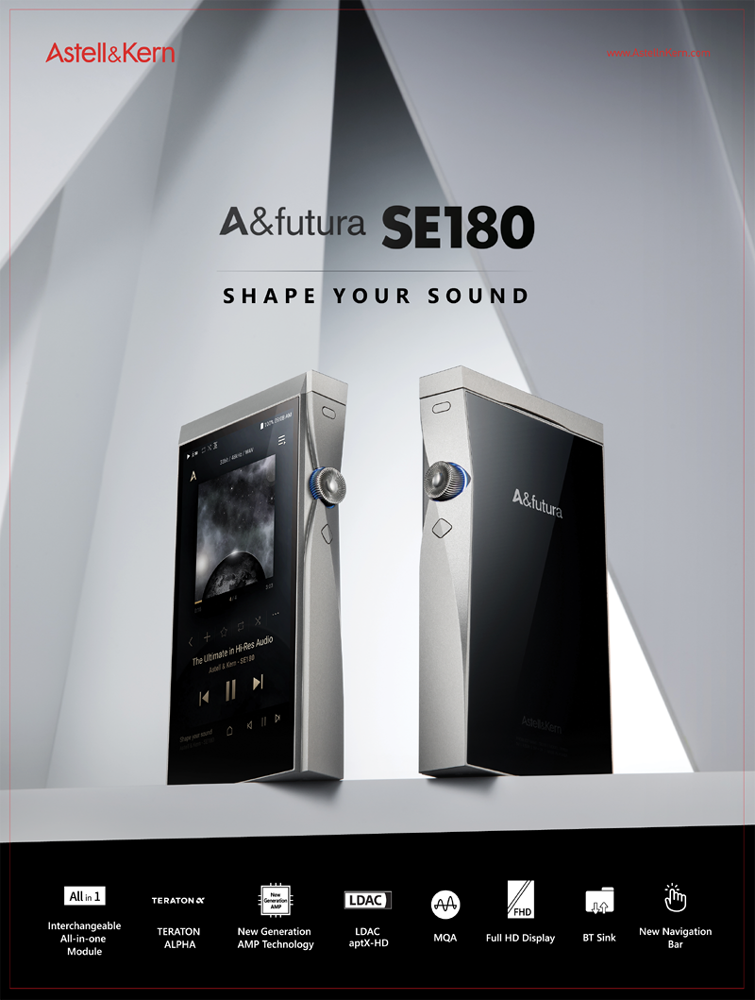 Firma Astell&Kern, globalny lider w segmencie przenośnych odtwarzaczy klasy premium wprowadza model SE180, trzeci model nagradzanej serii A&futura. Jest to jednocześnie pierwszy odtwarzacz dla pasjonatów posiadający wymienialne moduły przetwornika cyfrowo-analogowego integrujące cały tor audio. To także rozwinięcie innowacyjnej koncepcji polegającej na zastosowaniu rożnych przetworników, pierwszy raz zastosowanej w odtwarzaczu SE200. Teraz fani dobrego brzmienia mogą je w unikalny sposób kształtować poprzez dobranie takiego modułu przetwornika cyfrowo-analogowego, którego dźwiękowy charakter odpowiada im najbardziej.